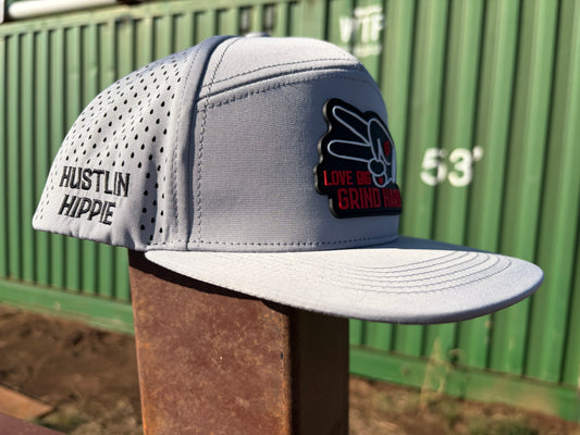 PL Series Hydro Snapback- LIGHT GRAY- RUBBER LOGO w/LOVE BIG GRIND HARD