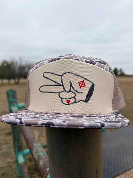 PL Series 7 Panel Mesh Snapback- TAN/CAMO- GREY LOGO w/ BOLD style