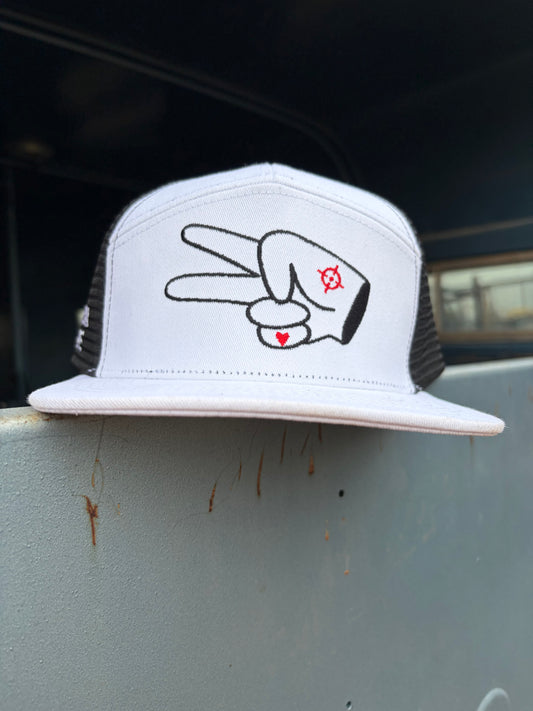 PL Series 7 Panel Mesh Snapback- WHITE/BLACK- BLACK LOGO w/ BOLD style