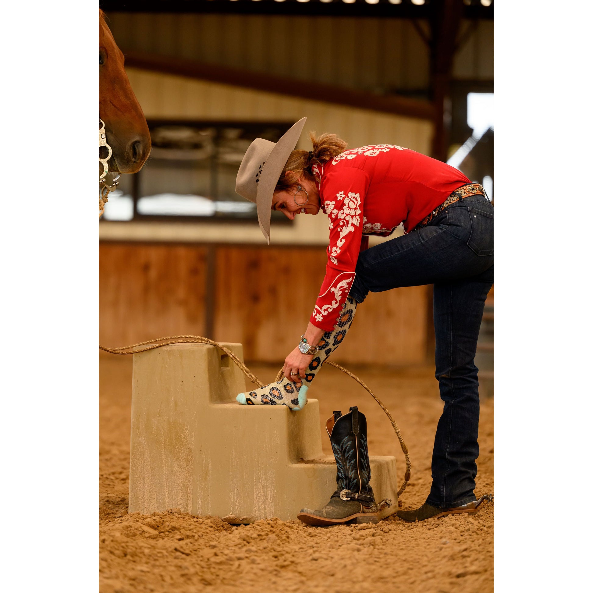 Under the creative vision of head cowgirl Lorinda Van Newkirk, Lucky Chuck® Performance Socks deliver on both style and functionality. These riding essentials are tall enough to protect your calves, stay up all day, and never cut off circulation. Plus, they soften with every wash without wearing out—giving you even more chances to rock your lucky socks every day.